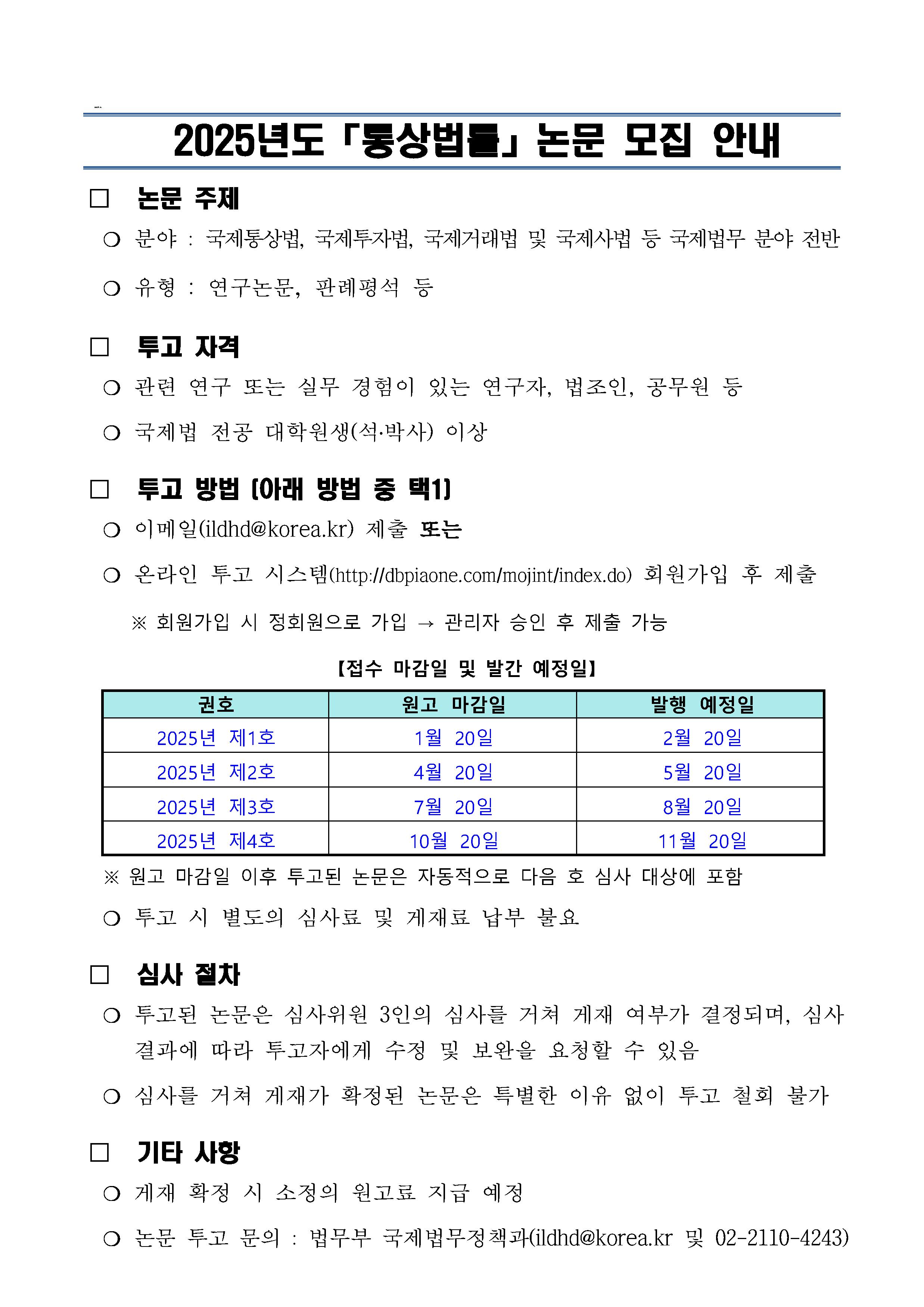 (법무부) 2025년도 「통상법률」논문 모집 안내